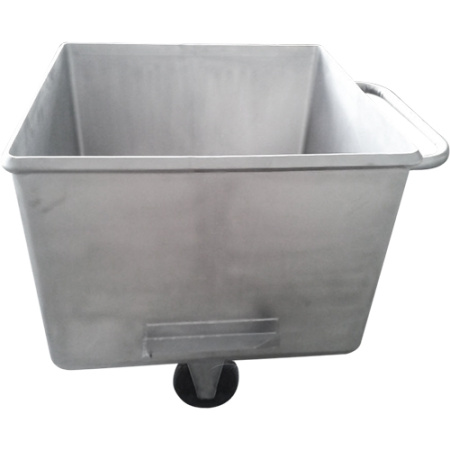 Тележка представляет собой ёмкость из нержавеющей стали специальной конструкции, предотвращающей скопление продукта и позволяющей при мех. выгрузке производить полное опорожнение, без остатков. Так-же конструкция облегчает санитарную обработку. Верхние края ёмкости имеют ребро жесткости. С боков расположены стандартные (типовые) кронштейны опрокидывателей, которые подходят для подавляющего большинства загрузчиков(при необходимости могут устанавливаться любые кронштейны.