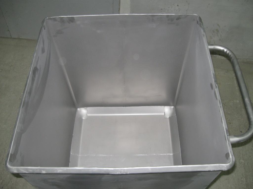Тележка представляет собой ёмкость из нержавеющей стали специальной конструкции, предотвращающей скопление продукта и позволяющей при мех. выгрузке производить полное опорожнение, без остатков. Так-же конструкция облегчает санитарную обработку. Верхние края ёмкости имеют ребро жесткости. С боков расположены стандартные (типовые) кронштейны опрокидывателей, которые подходят для подавляющего большинства загрузчиков(при необходимости могут устанавливаться любые кронштейны.